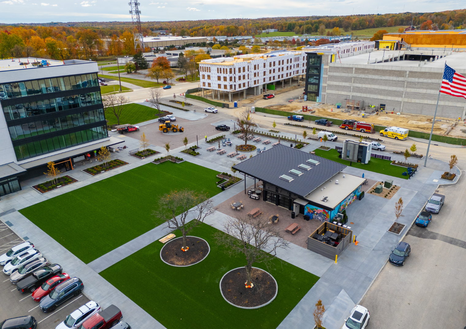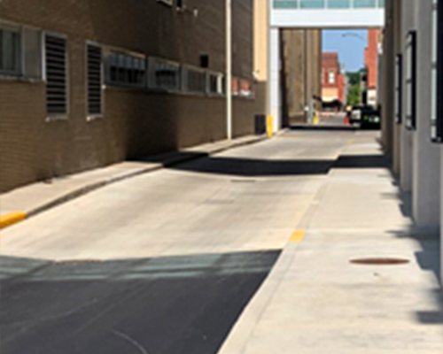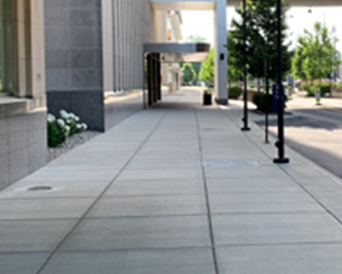 - 31,000 sq. ft. of 4” colored sidewalks with mesh reinforcement and decorative sawcutting in 4% Onyx color