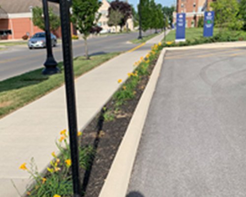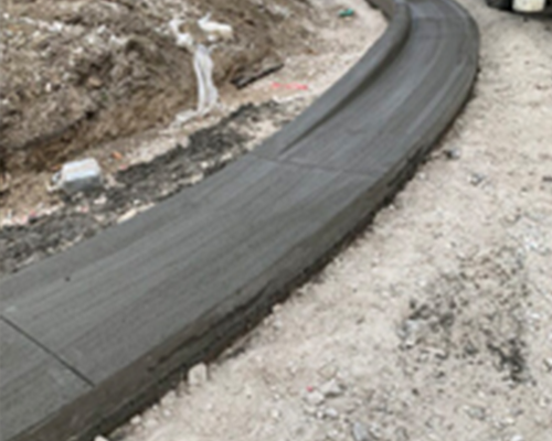 - 2,500 linear feet of 4” rolled landscape curbs along walks