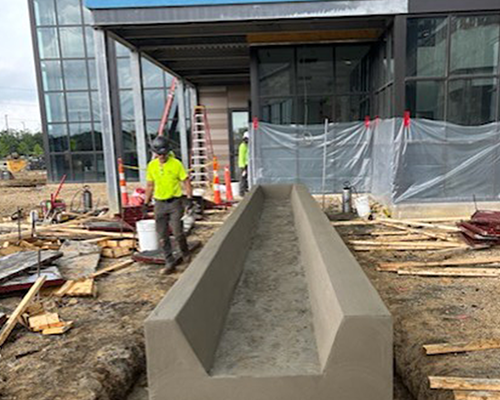 - 1,100 linear feet of 6” x 14” planter curbs in 1% slate color